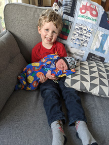 Making Alfie's quilt was a lot harder than I remember it being with George. I know I have said it plenty of times before, and I was not the only one to have a baby in 2020, but Alfie was born at the strangest time. I went into labour on the 15th March 2020. Parts of Europe had already locked down, closed schools, and were queuing 2 metres apart outside supermarkets. A few days after he was born I stuck him in the sling and did a food shop. There was no bread, eggs, pasta, very little fruit or veg or any of our basic food shopping. When you have a newborn you already feel like you are on a different planet, this felt like something apocalyptic. We came home, had one visit from the grandparents and it felt like we didn't open the front door again for months.