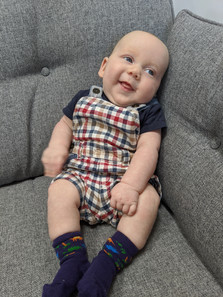 Alfie already had a wardrobe full of hand me downs that didn't make the cut for George's quilt. He obviously had a few nice new ones, but there wasn't that same association, "remember that zoom call with Nanny" doesn't quite have the same ring to it. There were no parties, gatherings, or cuddles. Just a few socially distanced picnics towards the end of the summer. We couldn't go anywhere further than the garden so I didn't dress him up. I didn't even think about it at the time. I just had a handful of babygrows that I loved, and they went in the wash and straight back on again. There was a particular mustard yellow set that I got from next. There were leopards and lions and things on them. I remember picking it out in the shop and knew it would be a favourite. Unfortunately, Alfie was very jaundice in the first few weeks that he fitted into them and he looked the same colour as the outfit. I picked it out of the wardrobe and wondered whether to include it. I had to take Alfie back to QMC for blood tests at around 10 days old to make sure there was nothing to be concerned about. Face masks were gold dust and patients still weren't being made to wear them, but the doctors and nurses were all PPE'ed up to their eye balls. Before they let me into the hospital I was shown flip cards through the window. They were asking all the questions we became very familiar with "have you had a temperature?", "continuous cough?", "lost sense of taste or smell?". I had to nod or shake my head from the pavement before they opened the door. Then they came out and took our temperature before they let us in. Seeing your newborn have a vile of blood filled through a heel prick is traumatic enough without all of this alien behaviour around it. Were these memories I wanted to be sewn into his quilt? Thankfully those days seem like a lifetime ago already. I remember thinking life will never be the same again. Maybe if I had made this quilt in 2020 I would have left those memories out. Now I think it is important to remember where we came from and what we went through.
